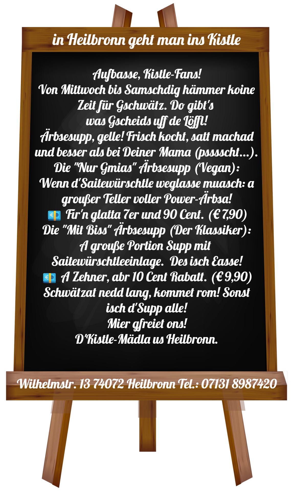 Also -- schnell In's Kistle - Tischreservierung unter Telefon ab 16:30 Uhr