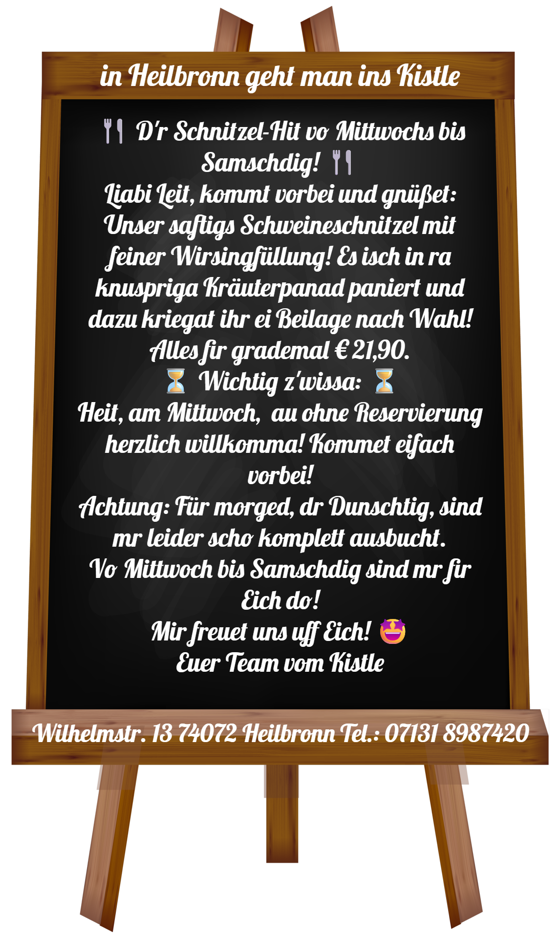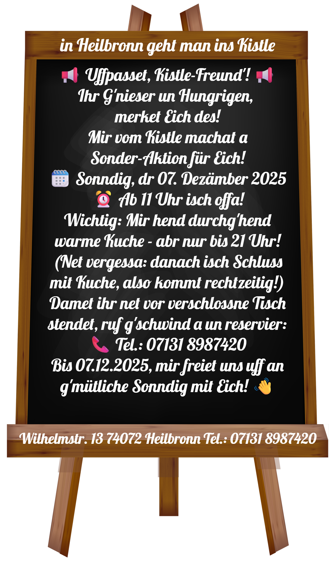 Also -- schnell In's Kistle - Tischreservierung unter Telefon ab 16:30 Uhr